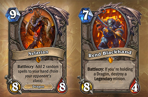 Rend Blackhand (Neutral): 8/4, 7 mana. Battlecry: Eğer elinizde ejderha sınıfı kart varsa karşıdakı rasgele Efsanevi minyonlardan brini yok eder.